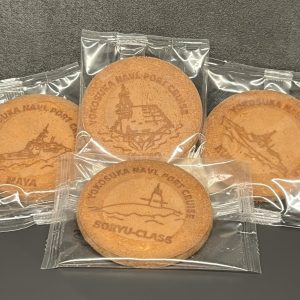 玉子をふんだんに使用した、ほんのり甘いクッキーです。「くまの」「そうりゅう」「いずも」「まや」の焼き印が施されています!
