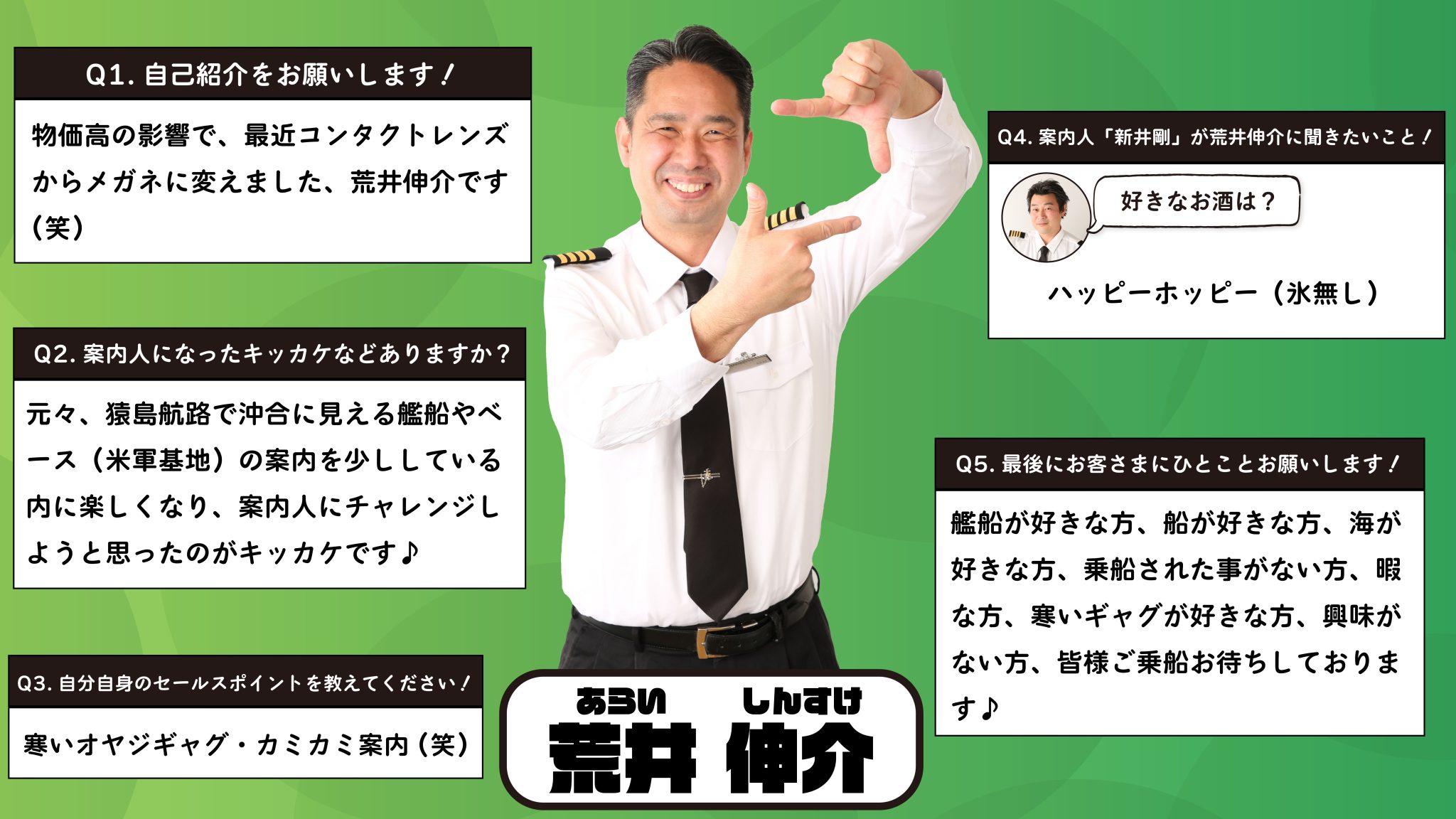 案内人も、下船後に皆さまとお話しできることを楽しみにしておりますので、お気軽に話しかけてみてください◎